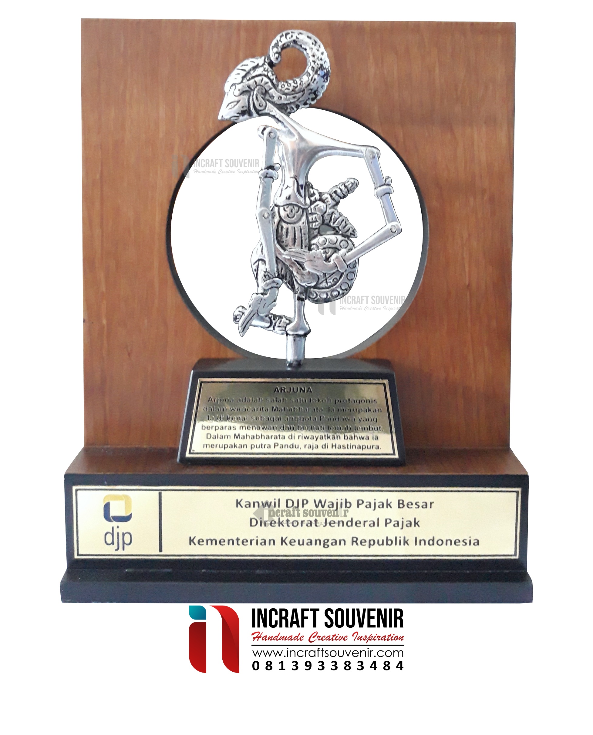 Plakat Wayang merupakan produk plakat yang eksklusif dan elegan. Plakat Wayang dengan kombinasi variasi bahan logam pilihan dan berkualitas menjadikan Plakat Wayang banyak sekali diminati baik instansi pemerintah, BUMN, Universitas dan juga perusahaan – perusahaan swasta. Produk Plakat Wayang ini terkenal dengan nilai kemewahanya dengan kombinasi dan dilengkapi dengan kotak bludru / batik menambah nilai eksklusufitas Plakat Wayang ini.