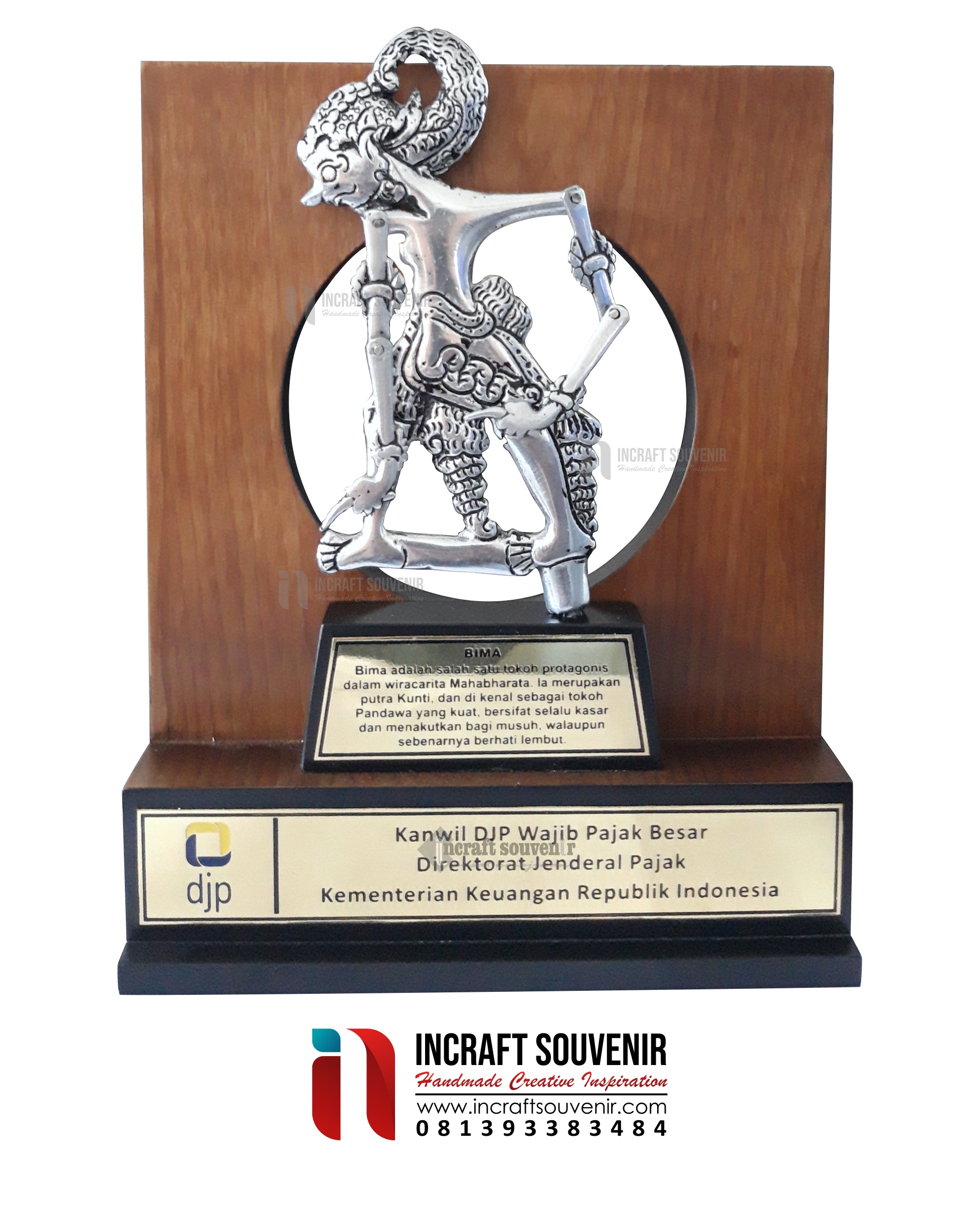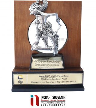 Plakat Wayang merupakan produk plakat yang eksklusif dan elegan. Plakat Wayang dengan kombinasi variasi bahan logam pilihan dan berkualitas menjadikan Plakat Wayang banyak sekali diminati baik instansi pemerintah, BUMN, Universitas dan juga perusahaan – perusahaan swasta. Produk Plakat Wayang ini terkenal dengan nilai kemewahanya dengan kombinasi dan dilengkapi dengan kotak bludru / batik menambah nilai eksklusufitas Plakat Wayang ini.