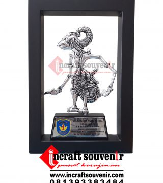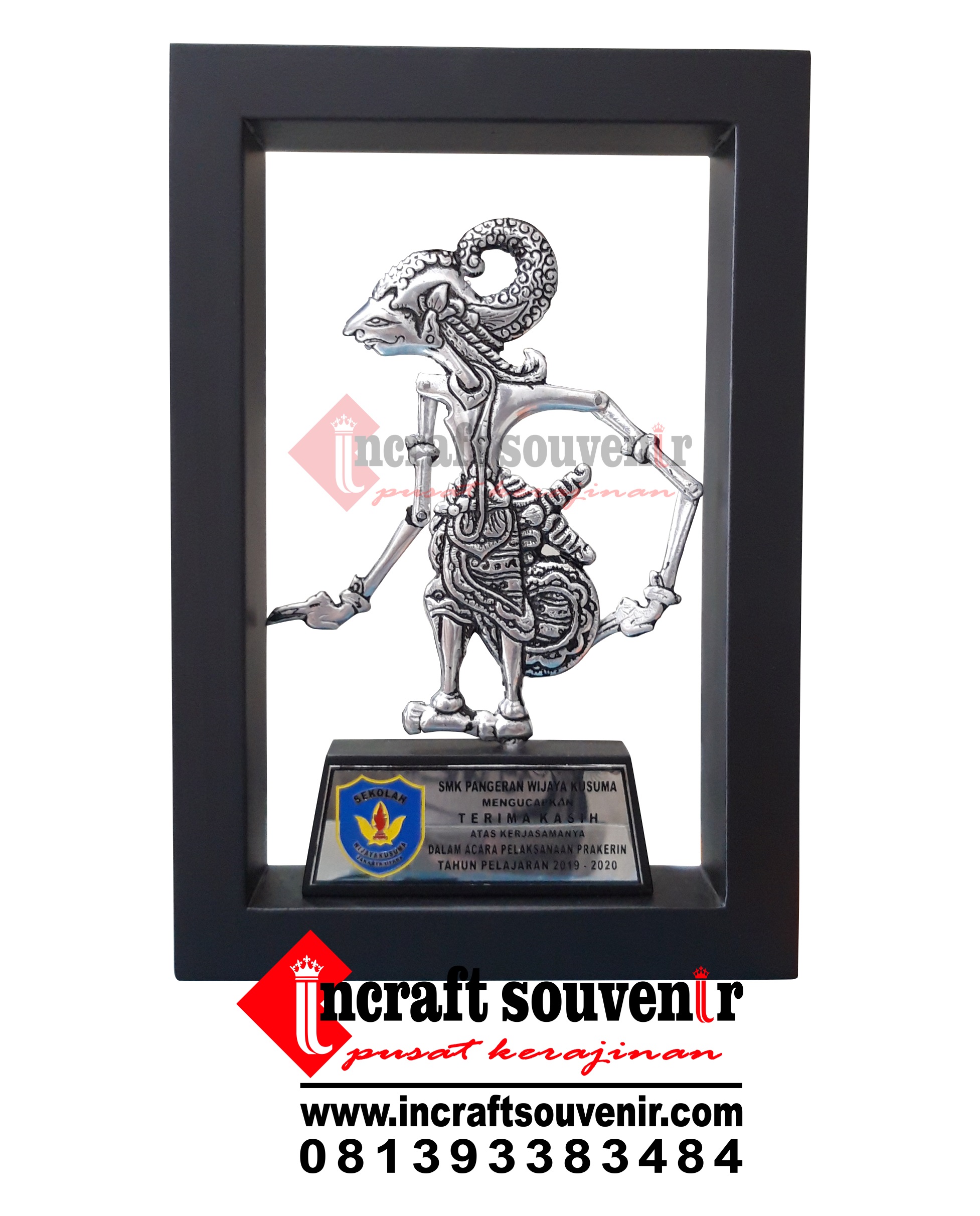 Plakat Wayang merupakan produk plakat yang eksklusif dan elegan. Plakat Wayang dengan kombinasi variasi bahan logam pilihan dan berkualitas menjadikan Plakat Wayang banyak sekali diminati baik instansi pemerintah, BUMN, Universitas dan juga perusahaan – perusahaan swasta. Produk Plakat Wayang ini terkenal dengan nilai kemewahanya dengan kombinasi dan dilengkapi dengan kotak bludru / batik menambah nilai eksklusufitas Plakat Wayang ini. Harga Plakat Wayang sendiri bervariasi tergantung dari kesulitan juga ukuranya.