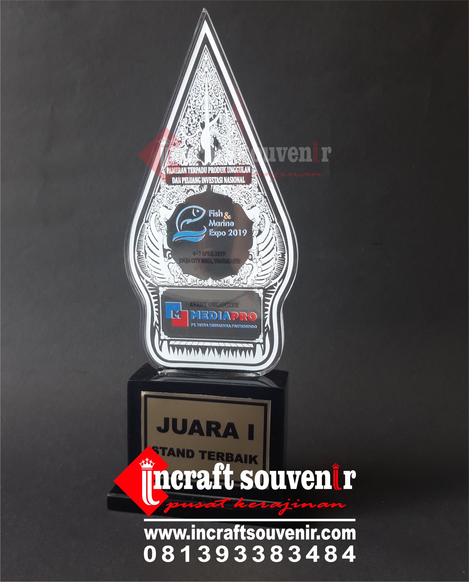 Pusat pembuatan plakat souvenir, plakat kayu, boxs kayu/beludru, plakat fiber/resin, medali, plakat wayang, plakat akrilik, piala dan souvenir wisuda. Untuk model dan bentuk bisa custom, dengan berbagai ukuran. Kami merupakan pengrajin langsung yang berdiri sejak tahun 1989, kami berpengalaman selama lebih dari 30 tahun dalam bidang pembuatan aneka plakat souvenir dan kerajinan.