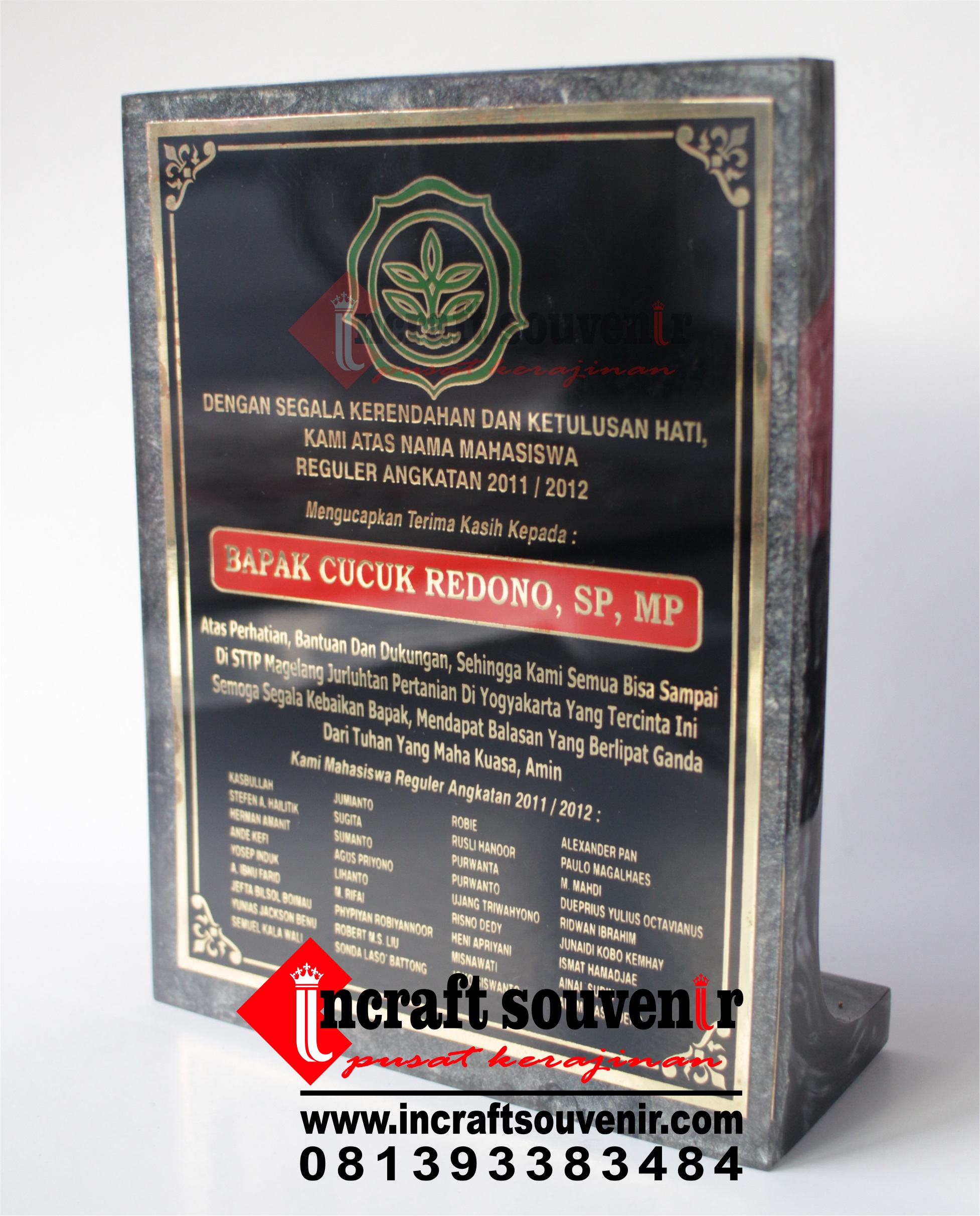 Pusat pembuatan plakat souvenir, plakat kayu, boxs kayu/beludru, plakat fiber/resin, medali, plakat wayang, plakat akrilik, piala dan souvenir wisuda. Untuk model dan bentuk bisa custom, dengan berbagai ukuran. Kami merupakan pengrajin langsung yang berdiri sejak tahun 1989, kami berpengalaman selama lebih dari 30 tahun dalam bidang pembuatan aneka plakat souvenir dan kerajinan.