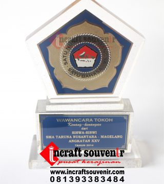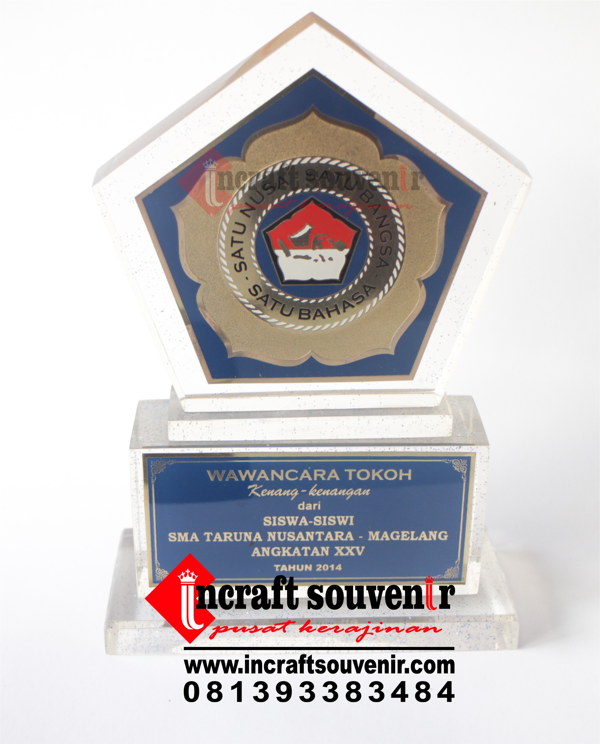 Pusat pembuatan plakat souvenir, plakat kayu, boxs kayu/beludru, plakat fiber/resin, medali, plakat wayang, plakat akrilik, piala dan souvenir wisuda. Untuk model dan bentuk bisa custom, dengan berbagai ukuran. Kami merupakan pengrajin langsung yang berdiri sejak tahun 1989, kami berpengalaman selama lebih dari 30 tahun dalam bidang pembuatan aneka plakat souvenir dan kerajinan.