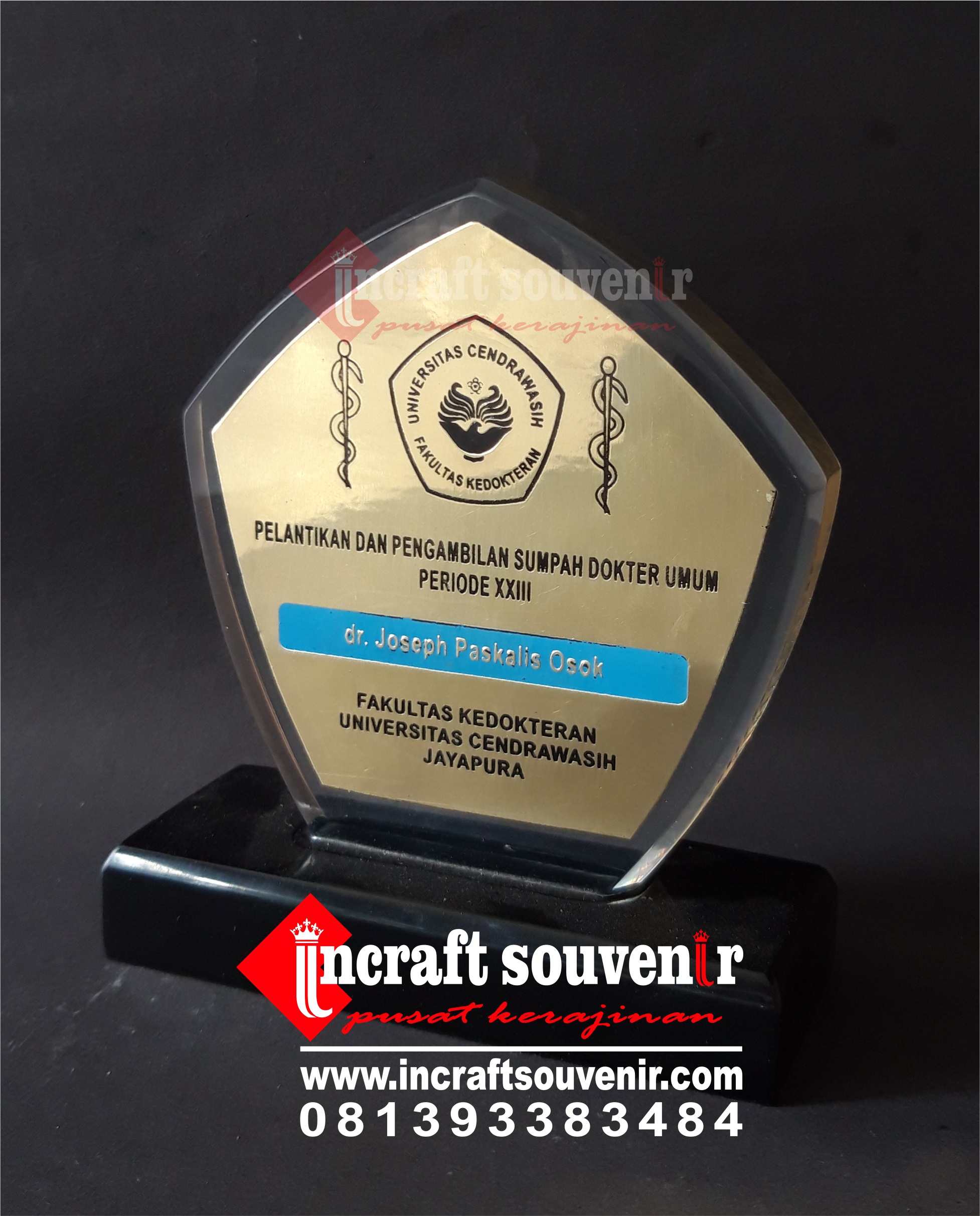 Pusat pembuatan plakat souvenir, plakat kayu, boxs kayu/beludru, plakat fiber/resin, medali, plakat wayang, plakat akrilik, piala dan souvenir wisuda. Untuk model dan bentuk bisa custom, dengan berbagai ukuran. Kami merupakan pengrajin langsung yang berdiri sejak tahun 1989, kami berpengalaman selama lebih dari 30 tahun dalam bidang pembuatan aneka plakat souvenir dan kerajinan.