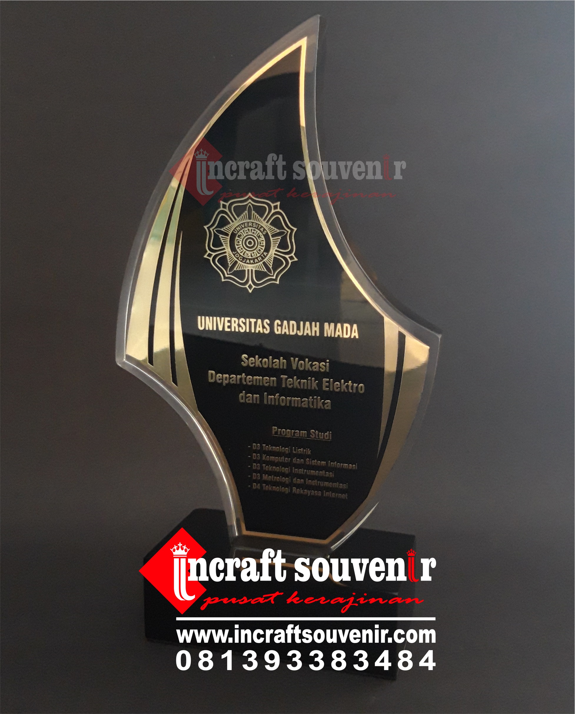 Pusat pembuatan plakat souvenir, plakat kayu, boxs kayu/beludru, plakat fiber/resin, medali, plakat wayang, plakat akrilik, piala dan souvenir wisuda. Untuk model dan bentuk bisa custom, dengan berbagai ukuran. Kami merupakan pengrajin langsung yang berdiri sejak tahun 1989, kami berpengalaman selama lebih dari 30 tahun dalam bidang pembuatan aneka plakat souvenir dan kerajinan.