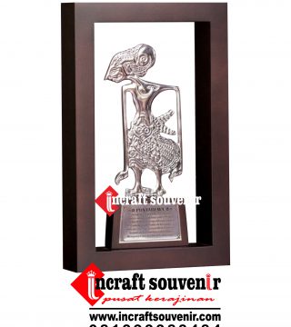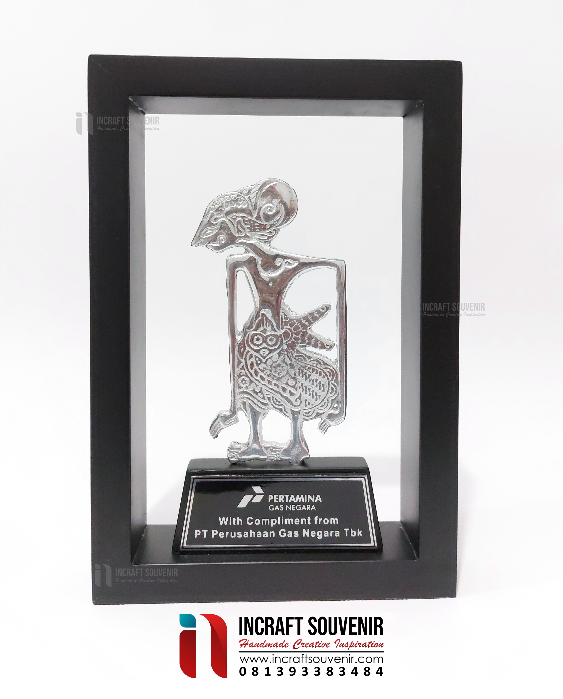 Plakat Wayang merupakan produk plakat yang eksklusif dan elegan. Plakat Wayang dengan kombinasi variasi bahan logam pilihan dan berkualitas menjadikan Plakat Wayang banyak sekali diminati baik instansi pemerintah, BUMN, Universitas dan juga perusahaan – perusahaan swasta. Produk Plakat Wayang ini terkenal dengan nilai kemewahanya dengan kombinasi dan dilengkapi dengan kotak bludru / batik menambah nilai eksklusufitas Plakat Wayang ini. Harga Plakat Wayang sendiri bervariasi tergantung dari kesulitan juga ukuranya