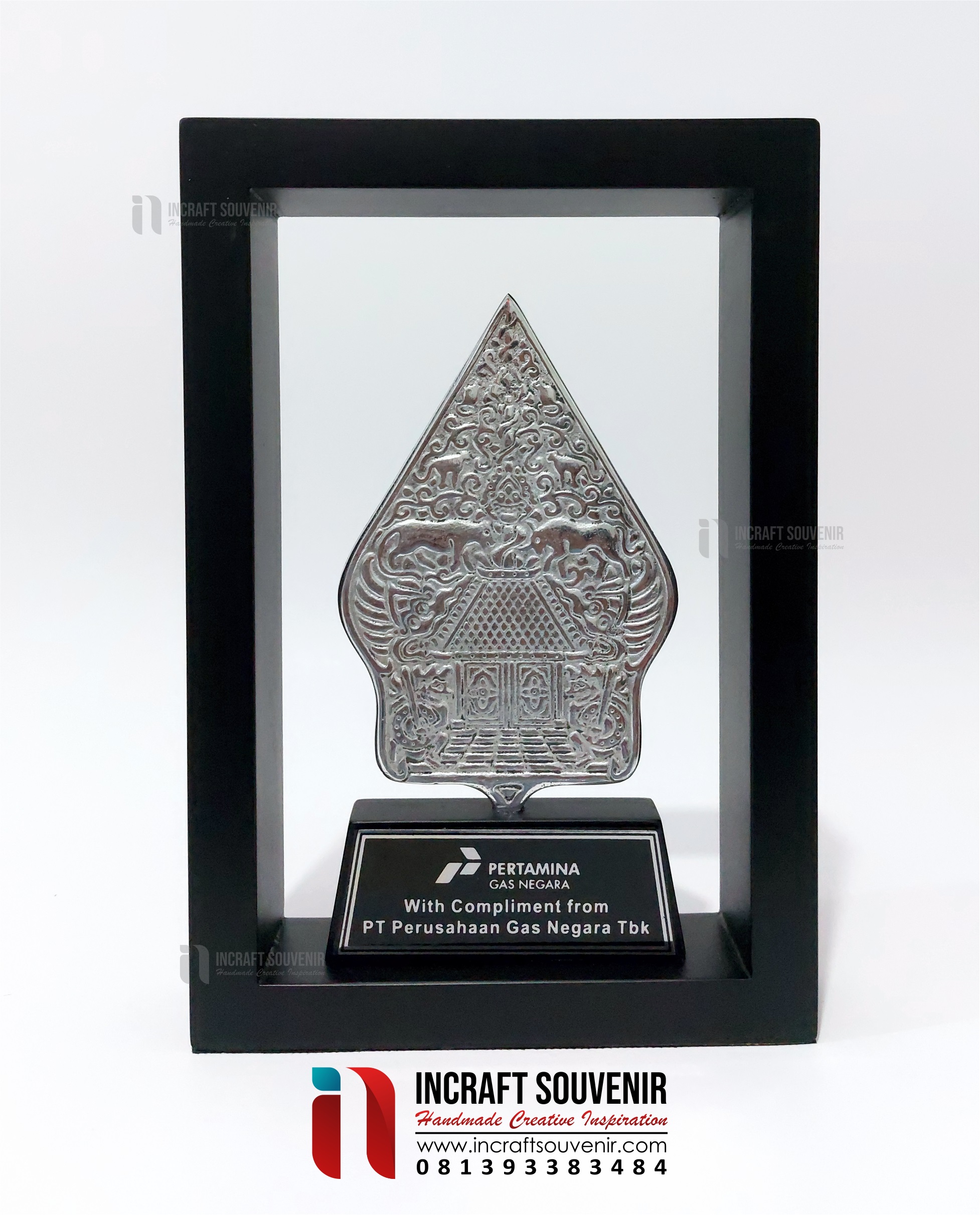 Plakat Wayang merupakan produk plakat yang eksklusif dan elegan. Plakat Wayang dengan kombinasi variasi bahan logam pilihan dan berkualitas menjadikan Plakat Wayang banyak sekali diminati baik instansi pemerintah, BUMN, Universitas dan juga perusahaan – perusahaan swasta. Produk Plakat Wayang ini terkenal dengan nilai kemewahanya dengan kombinasi dan dilengkapi dengan kotak bludru / batik menambah nilai eksklusufitas Plakat Wayang ini. Harga Plakat Wayang sendiri bervariasi tergantung dari kesulitan juga ukuranya